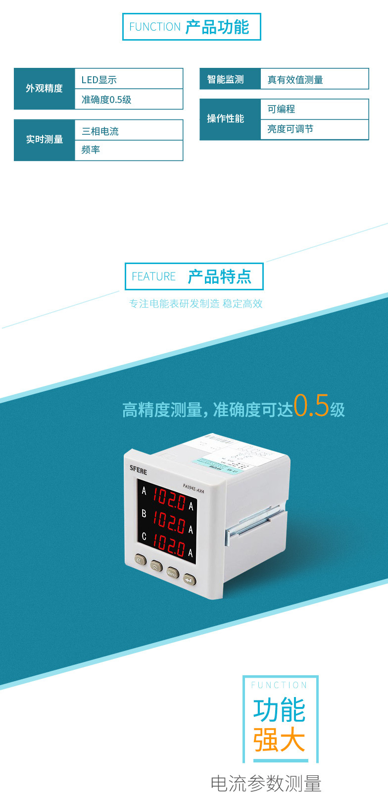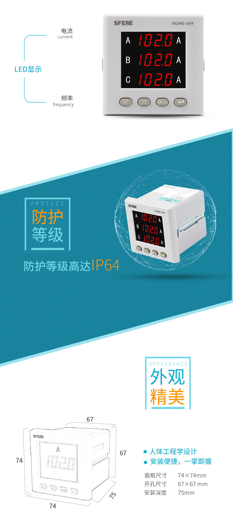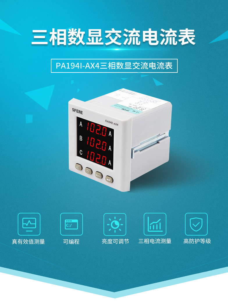 江苏斯菲尔电气sfere PA194I-AX4智能三相交流电流表电工仪 器仪表
